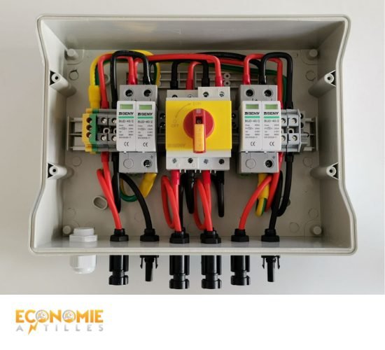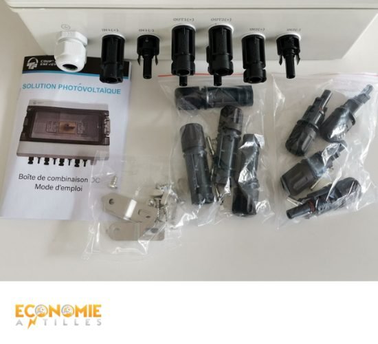 Boîtier de protection de courant continu 6KW 2 MPPT: Économie Antilles est heureux de vous présenter nos accessoires électriques pour boîtier de protection de courant continu (DC) de 6 kW avec 2 MPPT (Maximum Power Point Tracker). Ces accessoires ont été soigneusement sélectionnés pour répondre à vos besoins en matière de protection et de gestion de l’électricité solaire, que vous soyez un particulier ou un professionnel. Ils sont conçus pour garantir la sécurité, la fiabilité et l’efficacité de votre installation solaire.